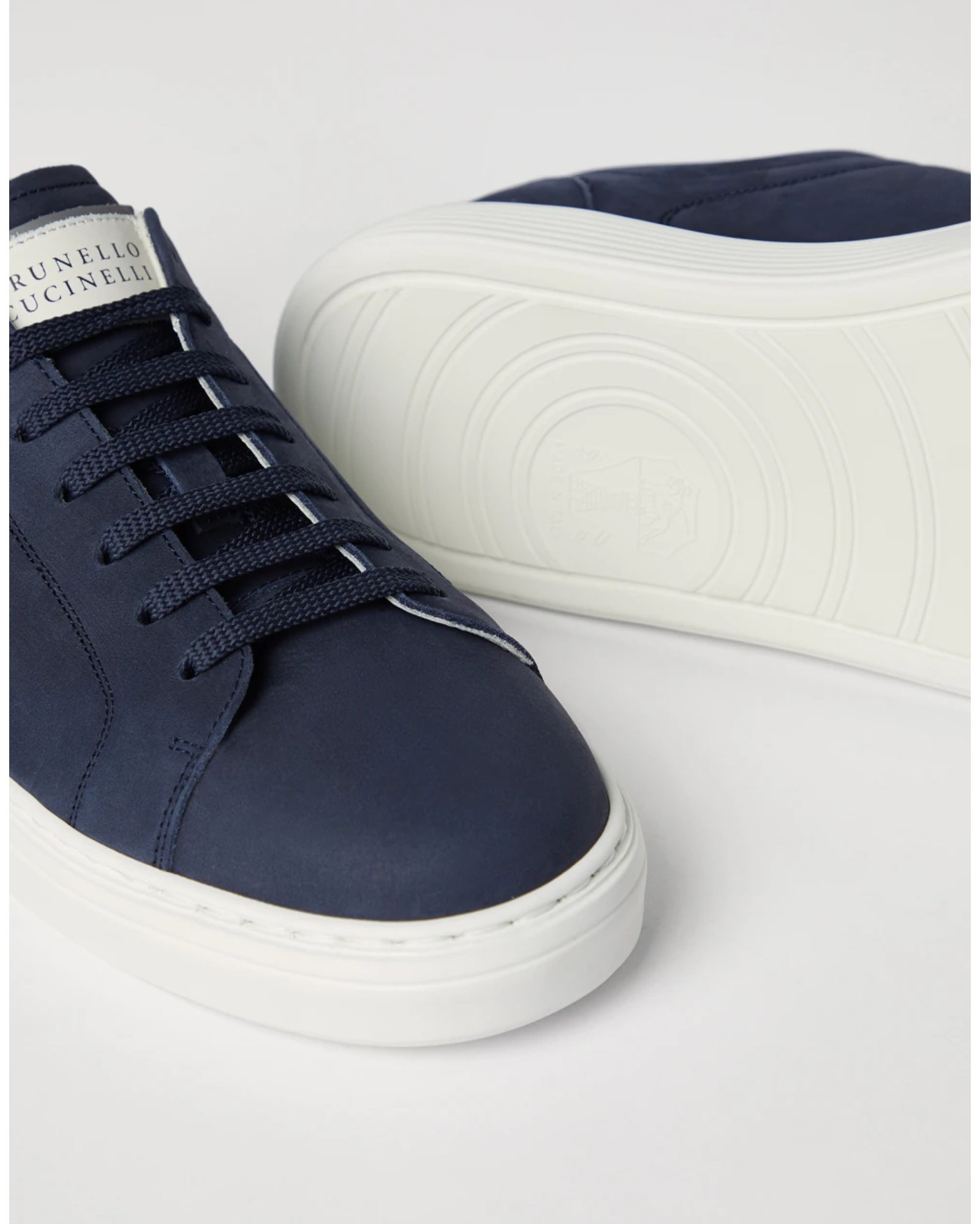Refined materials enrich the casual style of these sneakers. The characteristic texture of the calfskin nubuck showcases the season’s colors with a full, even effect that highlights the detail on the counter, creating a subtle material contrast. Featuring a series of grooves in the back, the ultra lightweight bottom showcases a personalized Brunello Cucinelli outsole design.