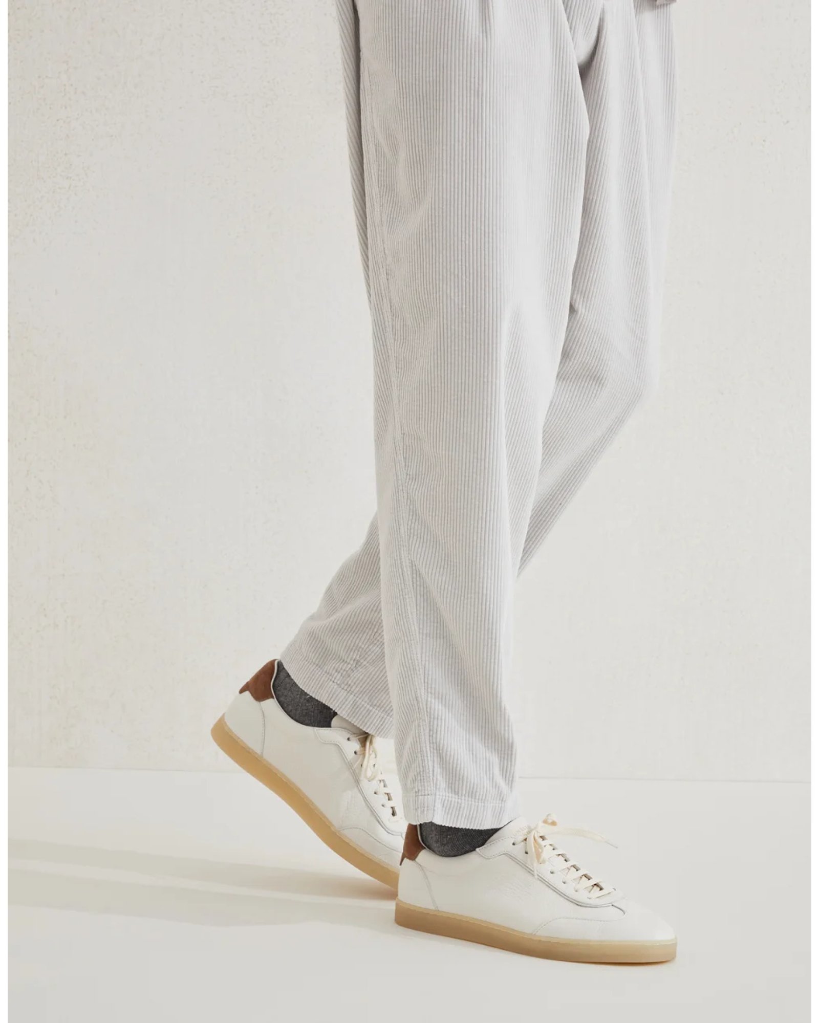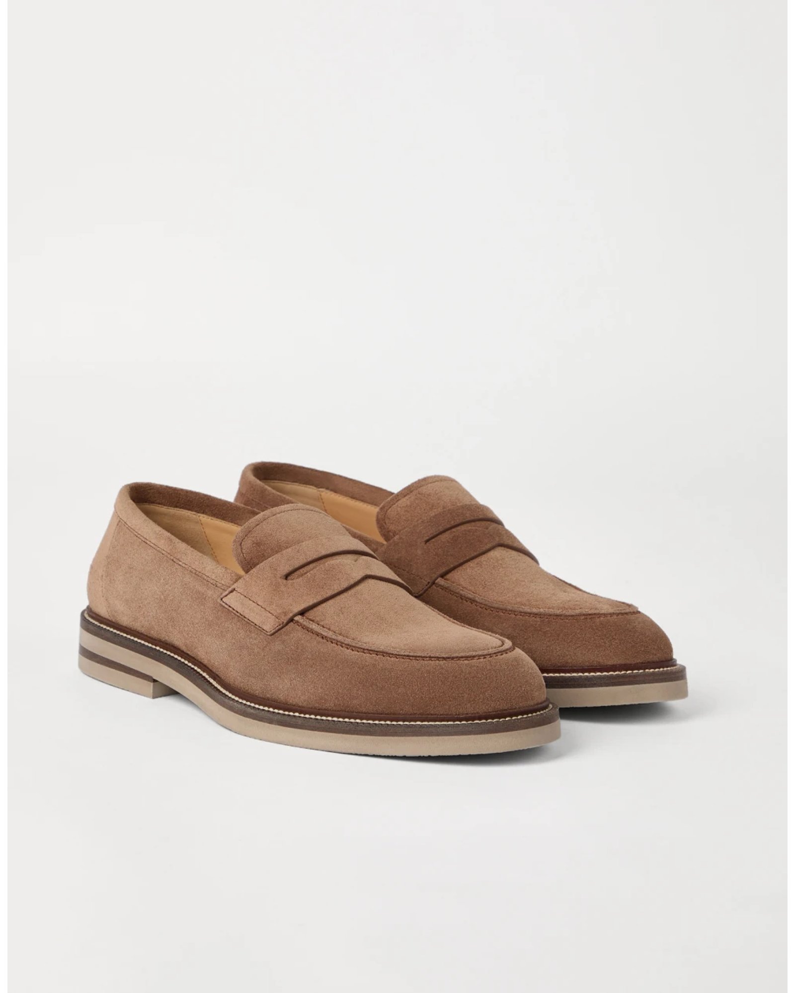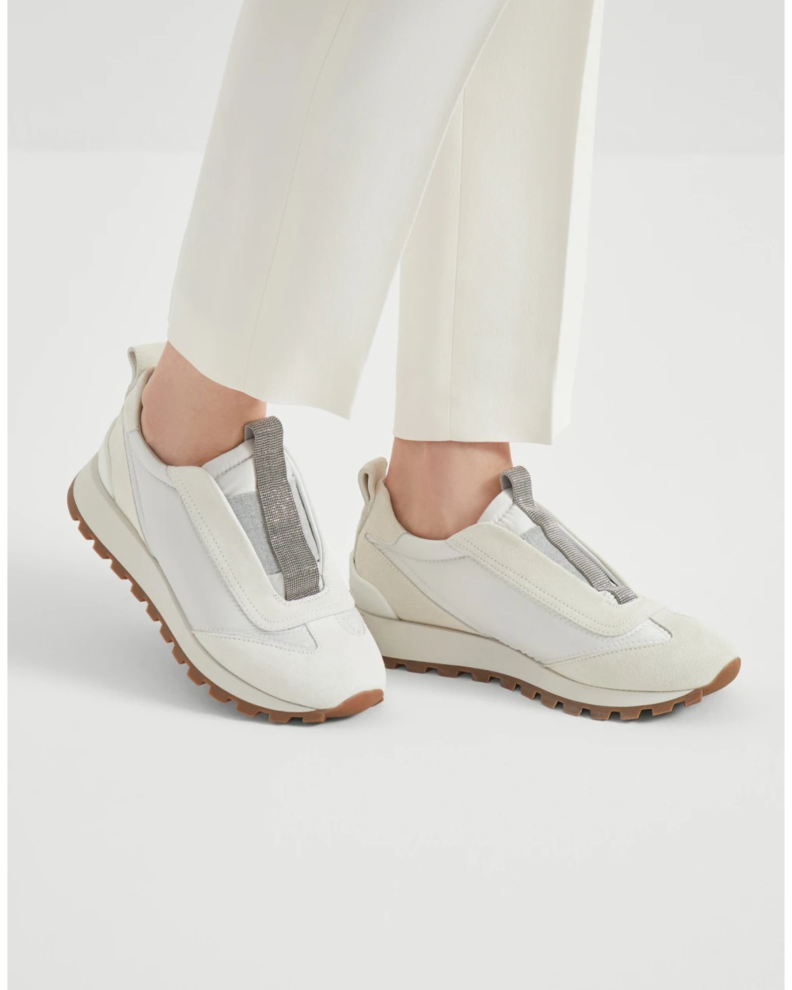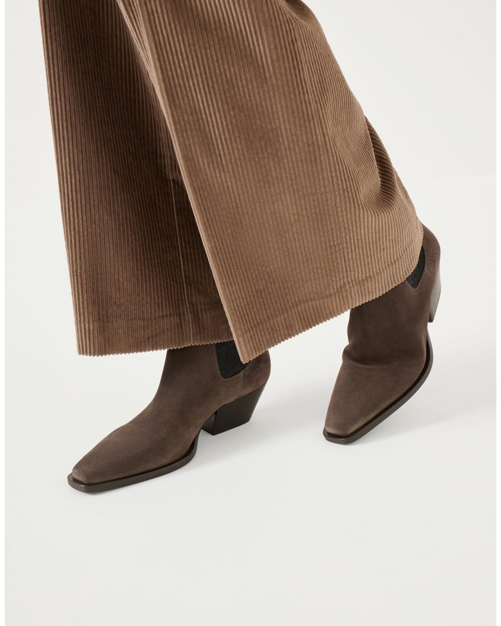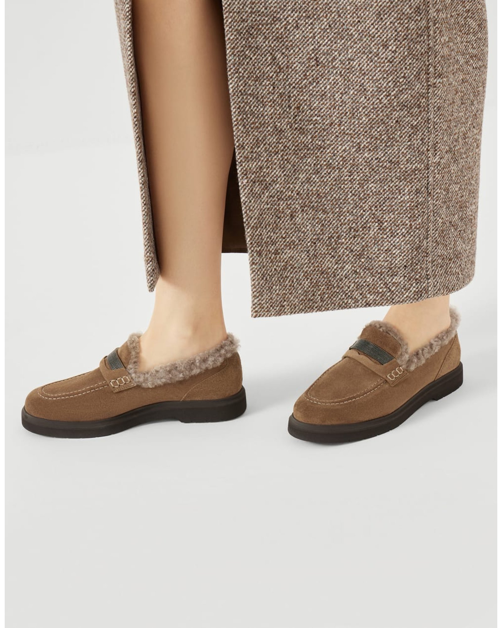 Pull-up calfskin mountain-style boots with flecked chevron insert and shearling lining