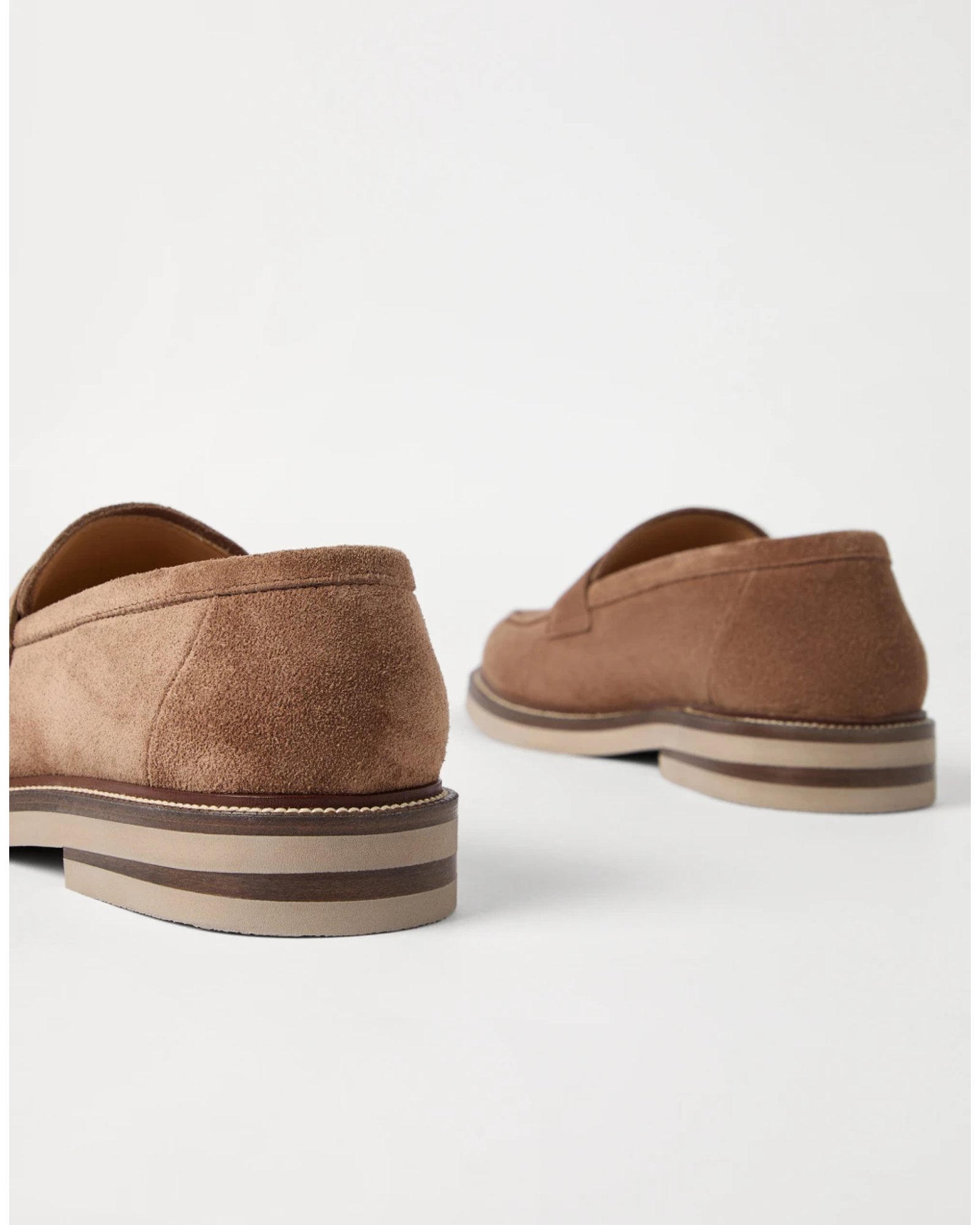 The lightweight suede is a refined leather with a thin, extremely soft texture. The leather lining and rubber outsole complete the footwear.